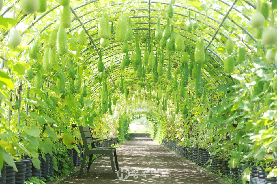 사진은 지난 22일 결성면 원천마을에 조성된 조롱박 터널 모습.