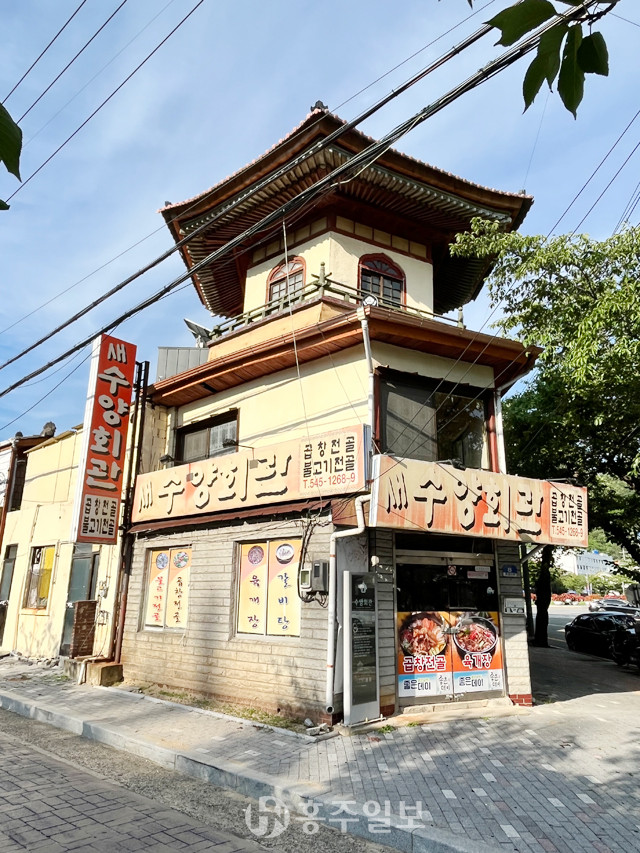 이승만 대통령 등 유명인들이 다녀갔으며 영화 ‘장군의 아들’ 촬영지였다고 한다. 원해루에서 도로를 사이에 둔 맞은편에는 지붕 모양이 뾰족해 ‘뾰족집’으로 불린 수양회관(현 곱창전골식당)이 있다. 1938년 지어진 이 집은 6각 형태의 누각이 있는 중국풍 건물이다. 문화재는 아니지만 독특한 외관이 인상적이다.
