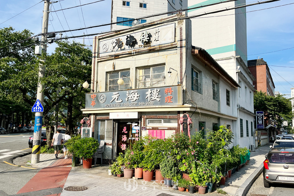 한자 그대로 길다란 목조건물이 도로를 따라 늘어서 있다. 나가야 건물 모퉁이를 돌면 1938년 건립된 일제시대 해군통제부 병원장 사택(등록문화재 193호)이다. 지금은 ‘선학곰탕’이란 이름의 음식점이다. 내부는 옛 일본식 가옥 특징을 고스란히 갖추고 있다. 해군 장병들이 꼽는 맛집인 중국음식점 ‘원해루(元海樓)’도 중원로터리에 있다. 원래 이름은 ‘영해루(榮海樓)’였다. 6·25 한국전쟁 때 중공군 포로였던 장철현이 1956년 개업한 중국요리집으로 60여 년 동안 자리를 지키고 있다.