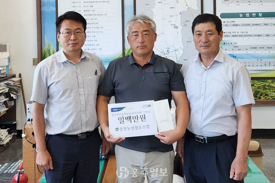 결성농협(조합장 이천범)이 지난달 29일 결성마을학교에 인구소멸 위기 탈출과 사회적 합의를 위한 발전기금 100만 원을 전달했다.<사진> 한편 결성마을학교는 오는 8일부터 2주간 ‘온종일 여름방학 파일럿 프로그램’을 진행할 예정이다.