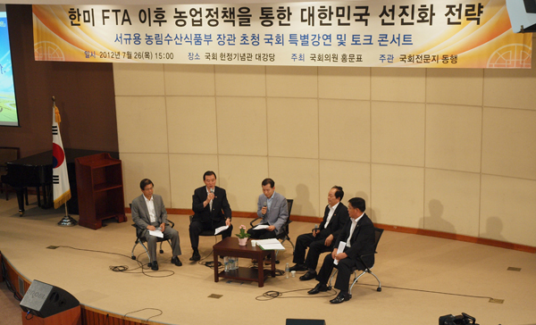 ‘한·미 FTA 이후 농업정책을 통한 대한민국 선진화 전략’을 마련하기 위한 행사가 홍문표 국회의원(새누리당, 예산·홍성)의 주최로 지난달 26일, 국회 헌정기념관 대강당에서 개최됐다.
