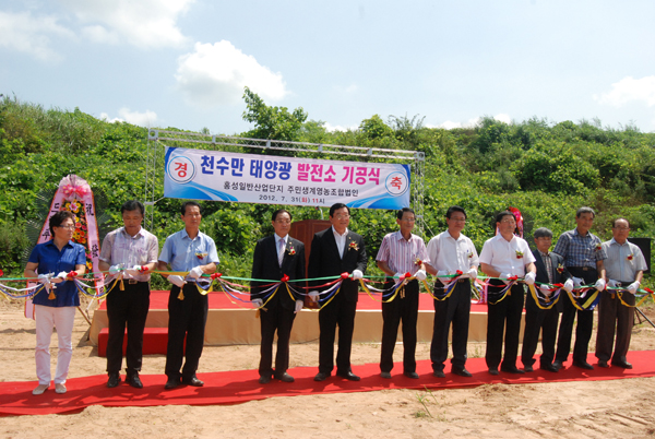 홍성군은 지난달 31일 오전 11시 갈산면 기산리에서 시간당 382kw의 발전용량을 갖춘 천수만 태양광발전소 기공식을 개최하고, 녹색성장과 홍성일반산업단지 조성의 원활한 추진, 산업단지 인근 주민생활 안정소득이라는 1석 3조의 효과를 꾀하고 있다.
