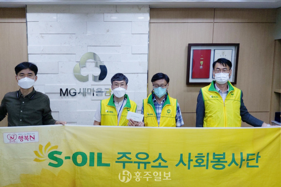 MG홍주새마을금고주유소(대표 오세승)와 S-OIL아산지사는 지난 8일 사회공헌활동을 통한 취약계층 지원과 지역사회 상생사업의 일환으로 정신장애인 사회복귀시설 라온의집에 후원금 100만 원을 전달했다.<사진>