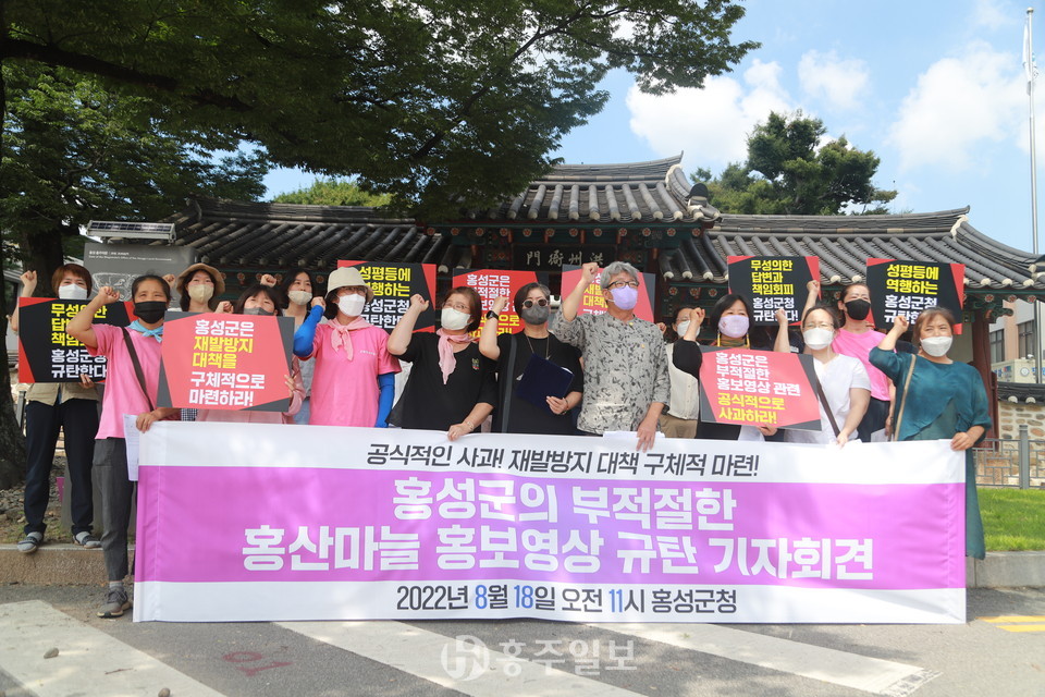 전국여성농민회총연합 충남도연합 준비위원회(위원장 서짐미, 이하 준비위)는 지난 18일 홍성군청 앞에서 ‘홍성군의 부적절한 홍산마늘 홍보영상 규탄’을 주제로 기자회견을 개최하고 항의서한을 전달했다.