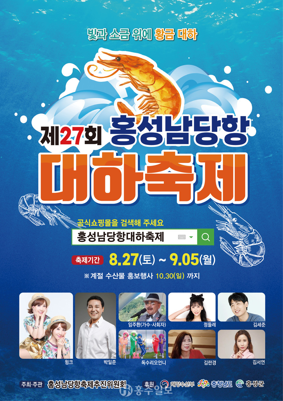 올해로 27회째를 맞이한 ‘홍성남당항대하축제’가 오는 27일부터 9월 5일까지 10일간 남당항에서 열린다.