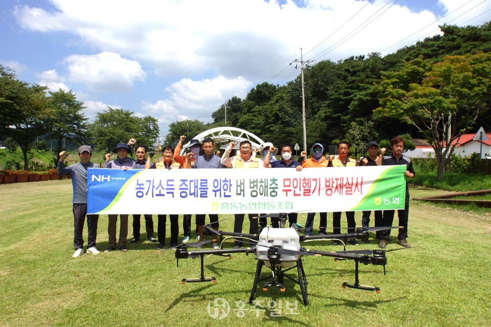 홍동농협(조합장 주정산)이 수도작 병충해 공동 항공방제를 지난 18일 모두 마무리 했다.<사진> 홍동농협은 친환경 농업의 메카인 홍동면 지역 특성을 고려해 친환경 필지와 인접 필지, 친환경 단지내 관행필지 등을 전부 친환경 단지로 구분하고 친환경 약제를 살포했으며, 두 차례에 걸쳐 총 772ha 면적에 방제를 진행했다.