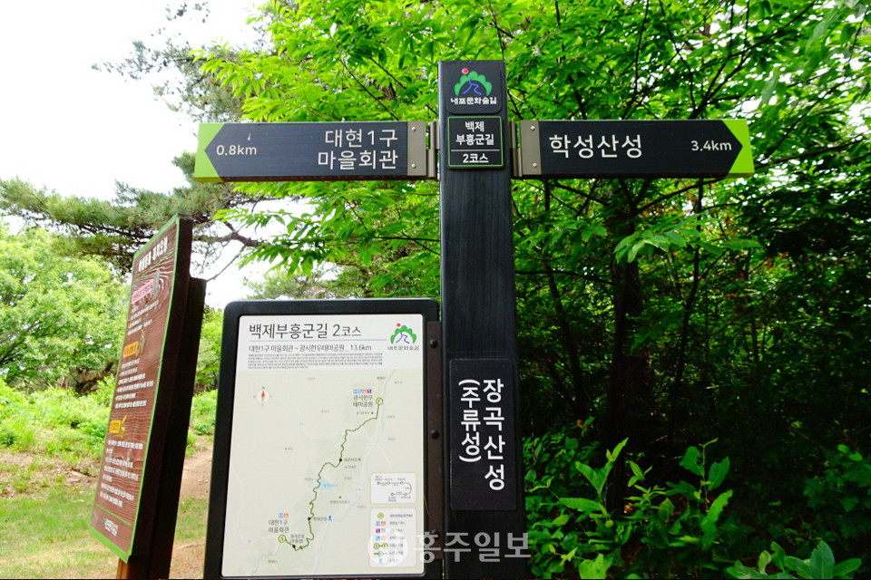 내포문화숲길에는 ‘백제부흥운동길’이 있다. ‘백제부흥운동길’ 제2코스에 있는 ‘홍성장곡산성’은 ‘대동지지’에 의하면 홍성지역에 백제의 주류성이 있었다고 전해지면서 학계의 주목을 받아왔다. 주류성은 임존성과 더불어 백제부흥운동의 중심 거성이었다. 임존성은 예산 대흥의 봉수산성으로 알려져 있지만, 봉수산성은 통일신라의 산성으로 판단된다는 점에서 오히려 홍성 장곡의 산성리에 위치한 학성산성을 백제의 임존성이 아닐까 추정하기도 한다. 한편 산성 중에서 평면형태가 삼태기형을 하고 있는 산성은 그 지역의 치소에 해당되는 곳으로, 홍성의 봉화산성, 결성산성, 신금성, 장곡산성 등이 그곳이다. 실제로 이러한 산성은 우견현(牛見縣), 결이군(結已郡), 사시량현(沙尸良縣), 궁경부곡(躬耕部曲) 등과 대응된다는 점을 들고 있다.