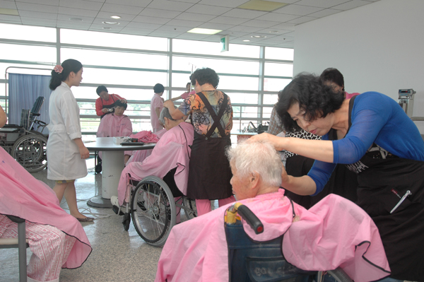 홍성의료원(원장 김진호)에서는 지난달 25일 노인병동에서 거동이 불편한 치매환자들을 대상으로 ‘사랑의 미용 봉사’가 펼쳐졌다.
