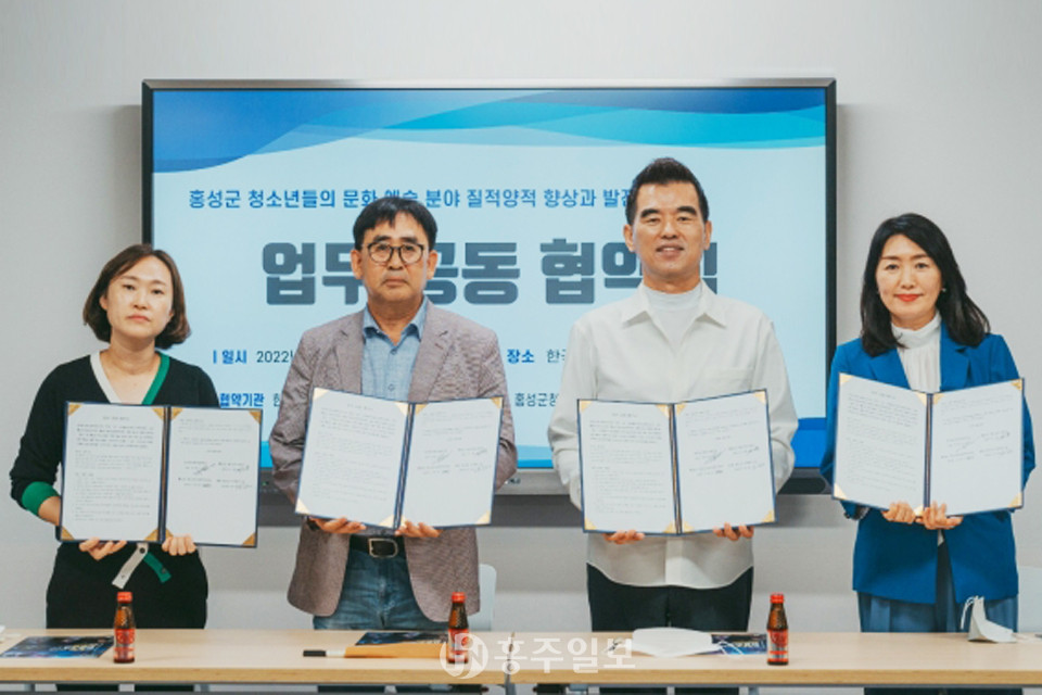 홍성군청소년복지재단이 한국K-POP고등학교(교장 박병규)와 지난 23일 청소년들의 문화예술 분야 발전과 지역사회 발전을 위한 업무 공동 협약식을 진행했다.<사진>