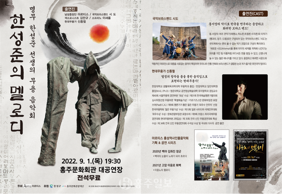 아르티스는 오는 1일 19시 30분 홍주문화회관에서 명무 한성준 선생의 무용음악회 ‘한성준의 멜로디’를 전석 무료로 공연한다.