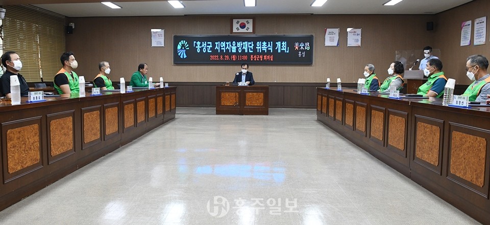 올해로 출범 14년째를 맞은 홍성군지역자율방재단이 지난 29일 군청 회의실에서 자율방재단 임원 등 20여 명이 참석한 가운데 단장, 읍‧면 임원 위촉식을 개최했다.