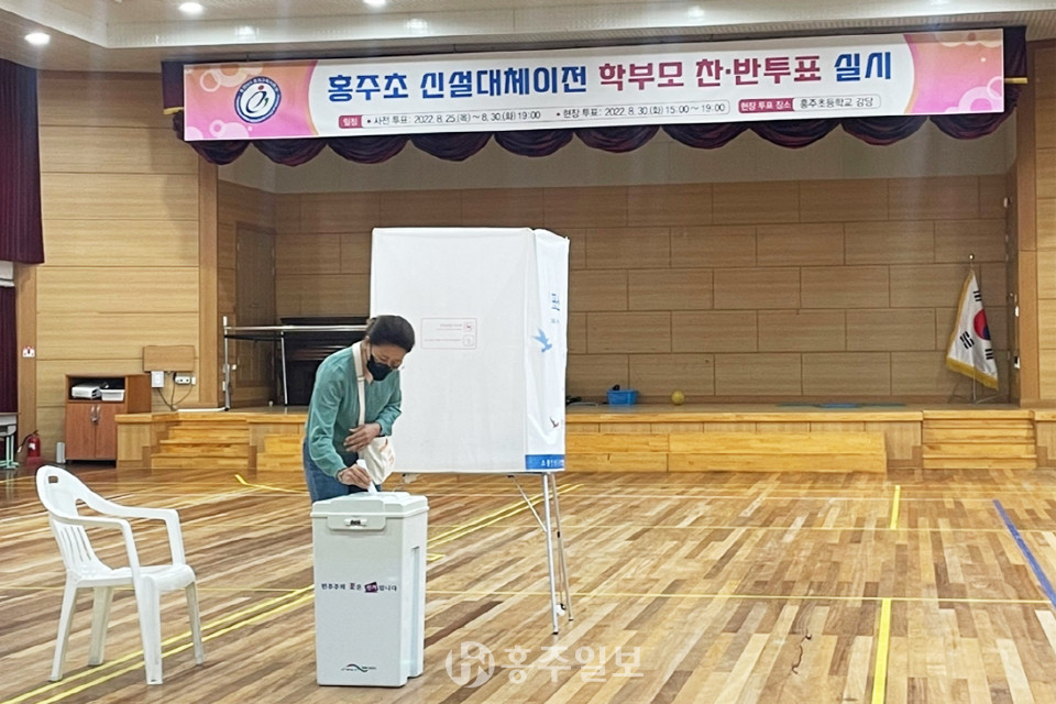 홍성교육지원청(교육장 주진익)에 따르면 홍주초등학교 신설대체이전에 대한 학부모 찬반 투표를 실시했다. 지난 25일부터 30일까지 실시한 사전투표와 30일 실시한 현장투표 결과, 투표참가자 80명 중 45명 찬성(찬성율 56%, 반대 34명, 무효 1명)으로 가결됨에 따라 홍북읍 신경리 930번지(부지면적 1만 5605㎡)에 40학급 규모로 2025년 9월 1일 개교 목표로 신설대체이전을 추진한다고 밝혔다.