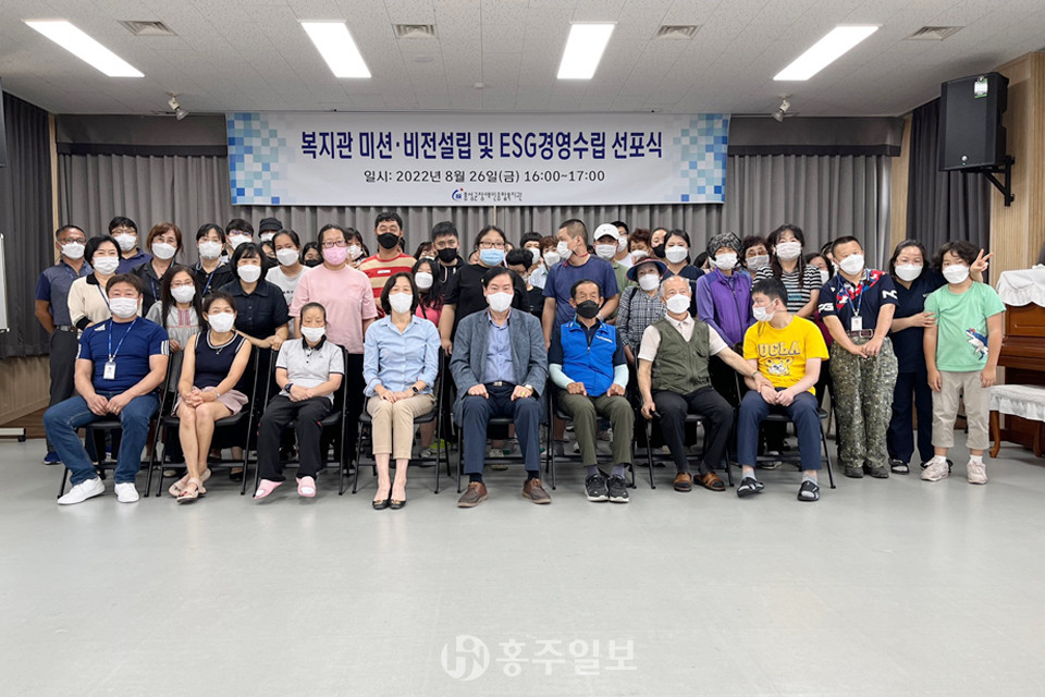 홍성군장애인종합복지관(관장 복천규)이 지난달 26일 미션과 비전을 재수립하며 ESG경영 선포식을 개최했다.<사진>