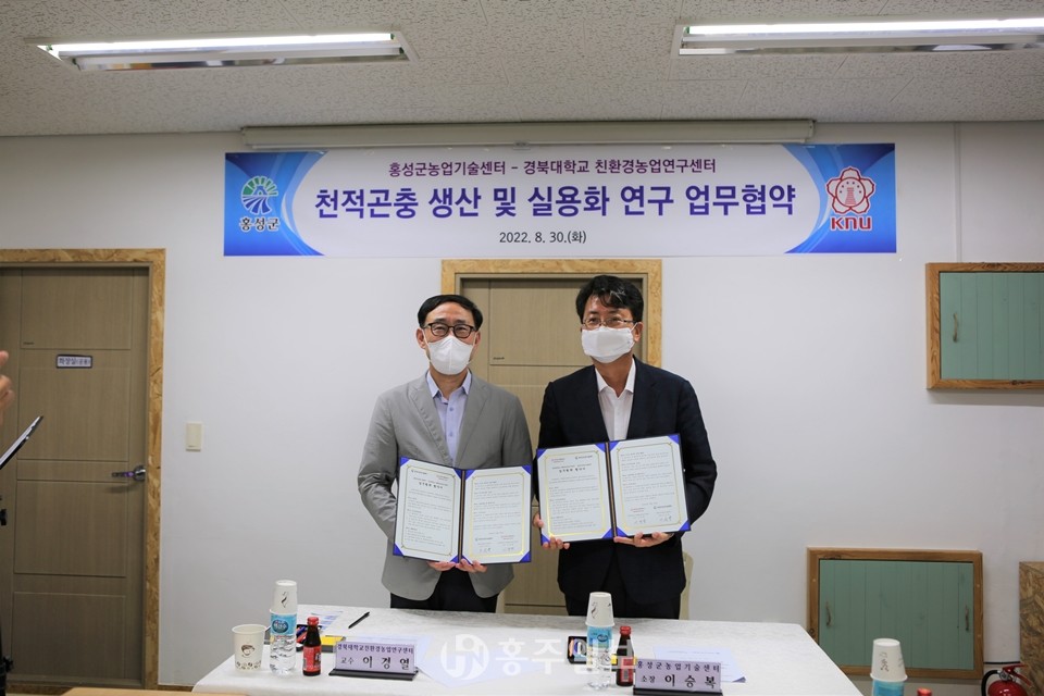 전국 최초 유기농업특구 홍성군는 지난 30일 농업에 천적 곤충 산업 발전과 친환경농업의 현장 접목을 위해 경북대학교 친환경농업연구센터와 업무협력 양해각서(MOU)를 체결했다.