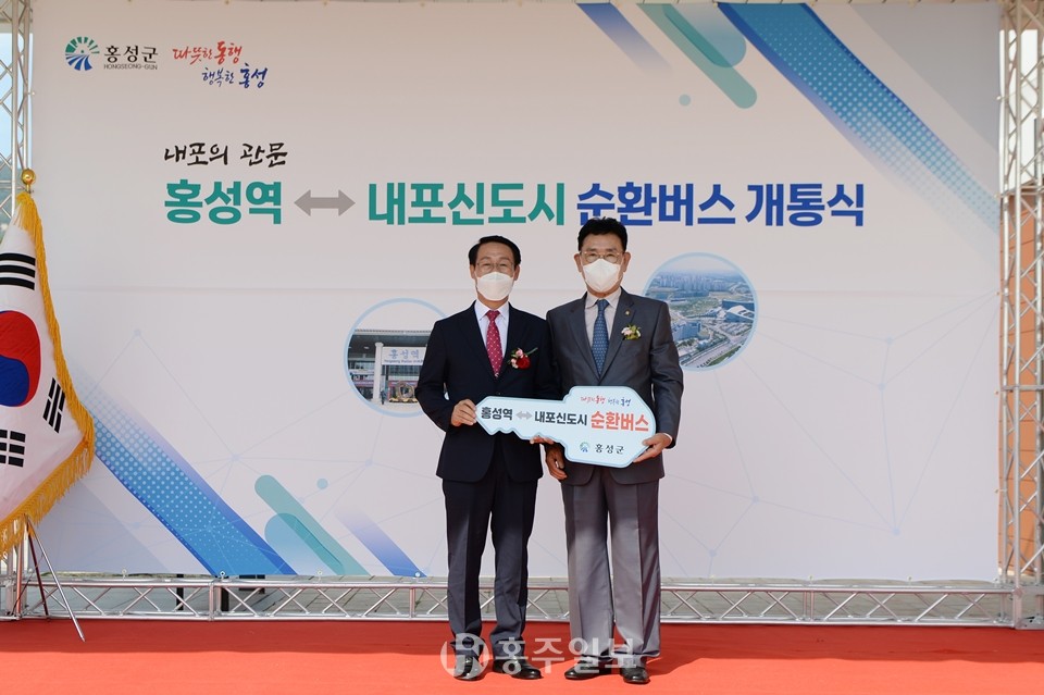 홍성군이 1일 내포신도시 충남도서관에서 내포-홍성 순환버스 개통식을 개최했다.