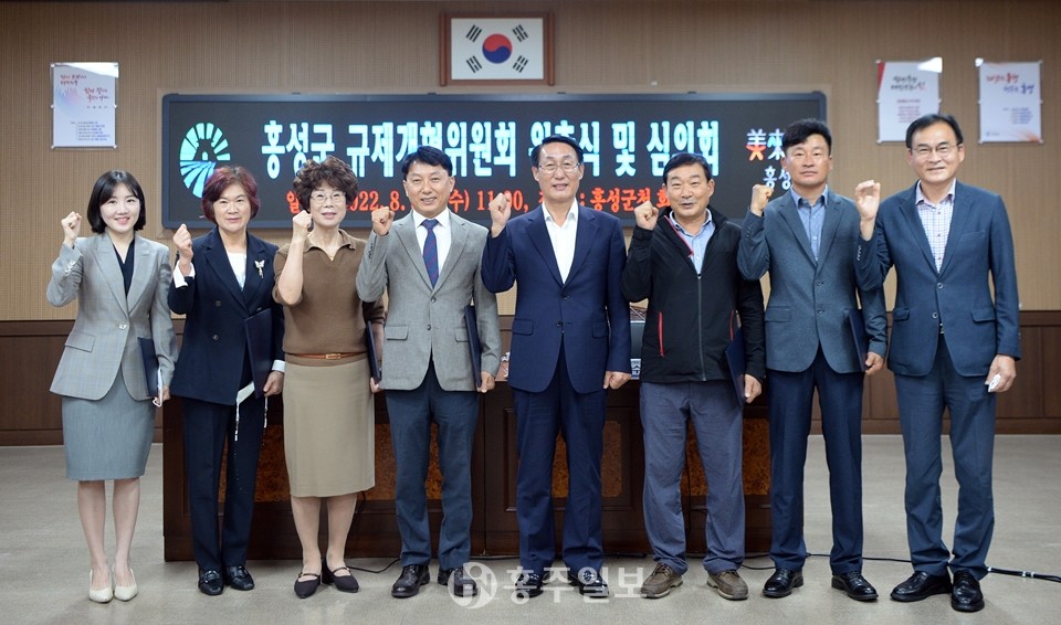 홍성군은 지난달 31일 규제개혁위원회 공동위원장(부군수 정한율, 위원장 김경수) 주재로 군청 회의실에서 민간위원 5명과 임명직 위원 3명이 참석한 가운데 ‘2022년 제1차 홍성군규제개혁위윈회’를 개최하고 신규위원 6명을 위촉했다.