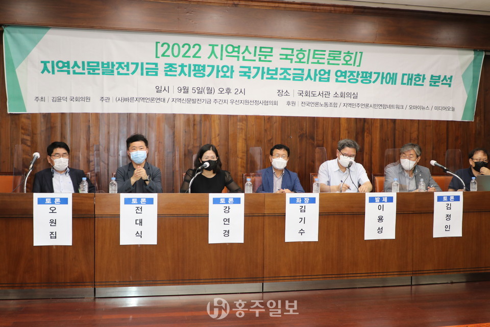 이같은 상황 속에서 전국의 풀뿌리 지역언론인이 참석한 가운데 ‘지역신문발전기금 존치평가와 국가보조금사업 연장평가에 따른 분석’을 주제로 한 국회 토론회가 지난 5일 국회 도서관 소회의실에서 열려 눈길을 끌었다. 이날 토론회에는 역대급 태풍에도 불구하고 전국에서 100여 명의 지역신문 종사자가 참석해 기금존치평가와 국고보조사업 연장평가에 대한 분석에 이어 대안을 모색했다.