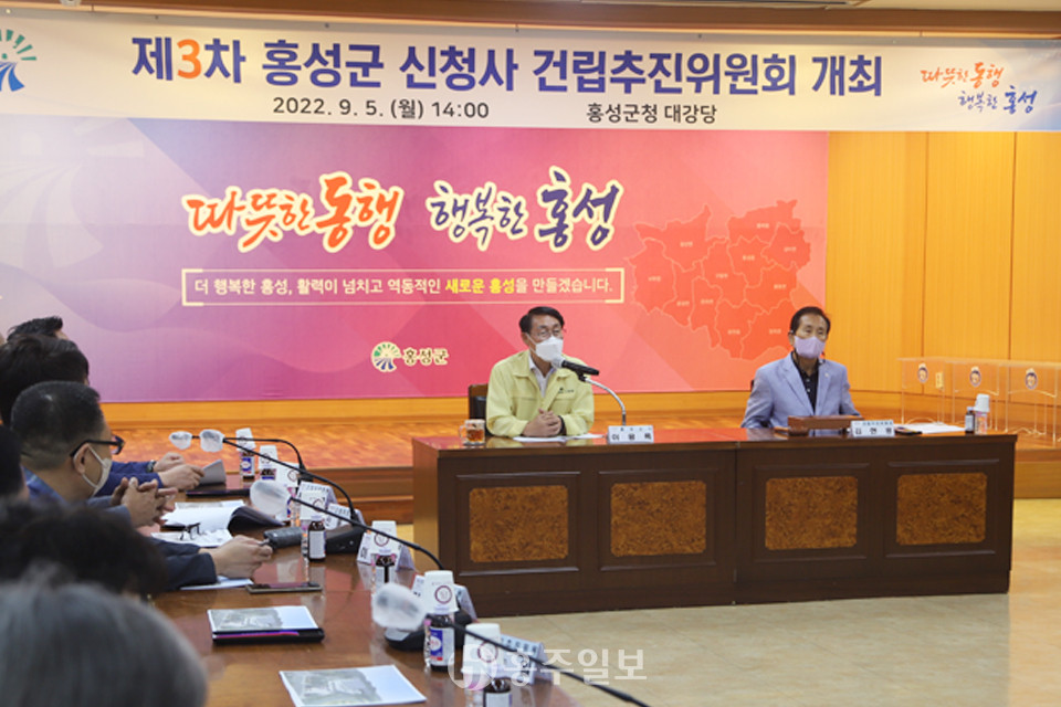 군은 지난 5일 군청 대강당에서 ‘제3차 홍성군 신청사 건립추진위원회(위원장 김현용, 이하 청사위원회)’를 개최하고 지난해 11월부터 진행된 기본설계용역에 대한 보고를 진행했다.<사진>