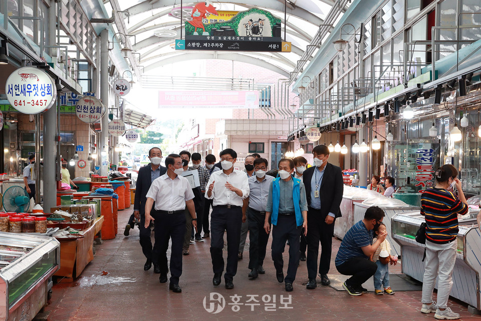 이날 광천전통시장 행사 현장을 찾은 전 부지사와 송 차관은 곳곳을 둘러보고 직접 수산물을 구매해 아동 생활센터에 기부했다.