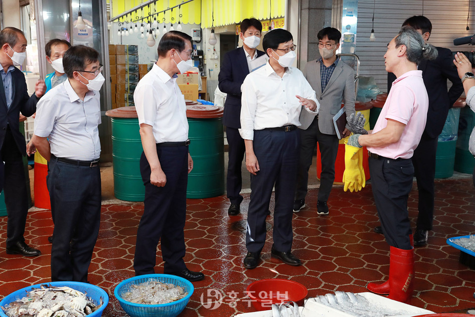 전형식 충남도 정무부지사는 지난 8일 송상근 해양수산부 차관 등과 함께 홍성 광천전통시장에서 진행 중인 추석 맞이 ‘2022 대한민국 수산대전 전통시장 온누리 상품권 환급 행사’ 현장을 찾아 민생을 살폈다.