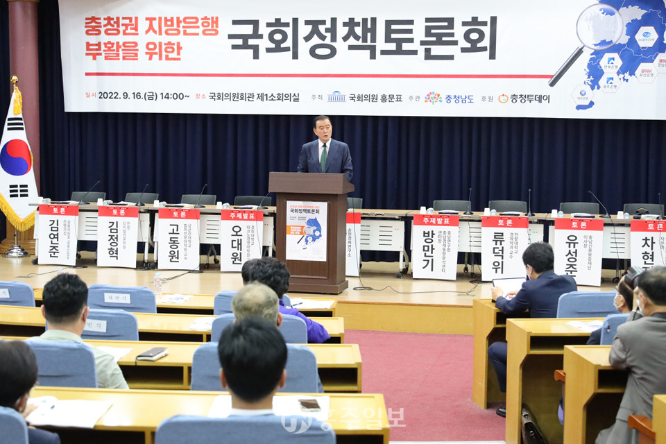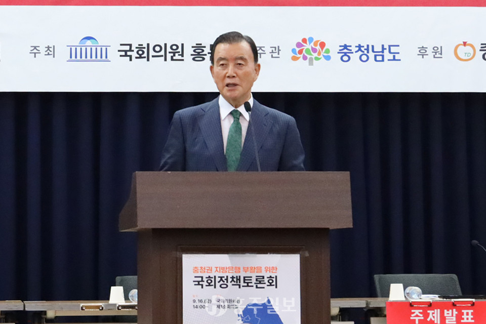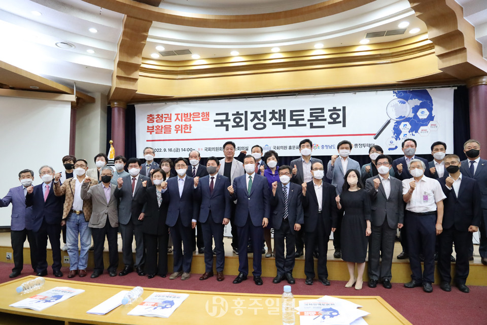 행사를 주최한 홍문표 의원은 “충청권은 대한민국 국토의 중심임에도 인사를 비롯한 SOC 등 수많은 정책적 엄청난 홀대를 받아 왔다”며 “충청권 지방은행 부재로 인해 47조 원의 지역소득이 타 시·도로 유출되고 있다”고 주장했다. 이어 “충청은행 설립 시 지역 내 자금을 효과적으로 조달해 자영업자와 소상공인의 금융 활동을 지원하고 지역중소기업 육성에 든든한 금융 버팀목이 될 것이라”고 덧붙였다.