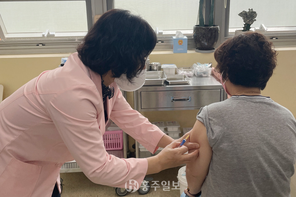 홍성군이 지난 21일부터 어린이(만 8세 이하 어린이 중 생애 첫 접종자)와 임신부, 만 65세 이상 어르신을 대상으로 무료 인플루엔자 예방접종을 순차 진행하고 있다.<사진>