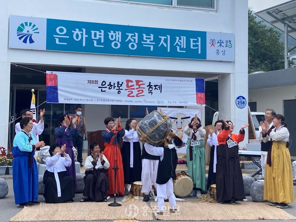 은하면 대천리의 은하봉 들돌축제가 올해로 8회째를 맞이했다. 지난 17일 은하면 대천리 대천마을(축제위원장 김지세)은 ‘제8회 은하봉 들돌축제’를 은하면행정복지센터 앞 공터에서 개최했다.