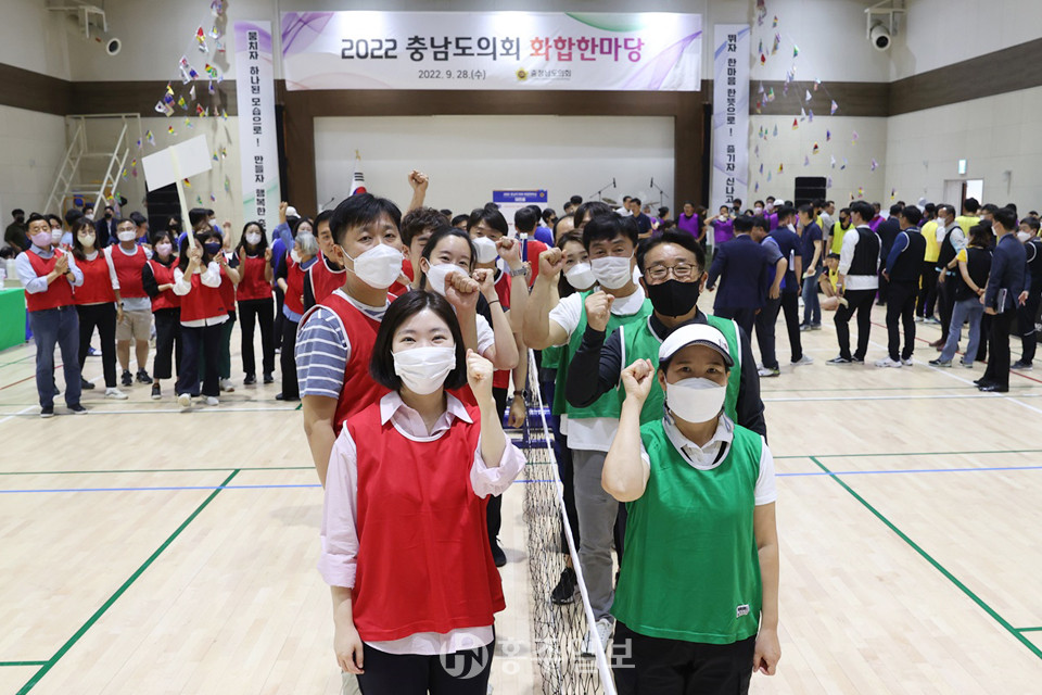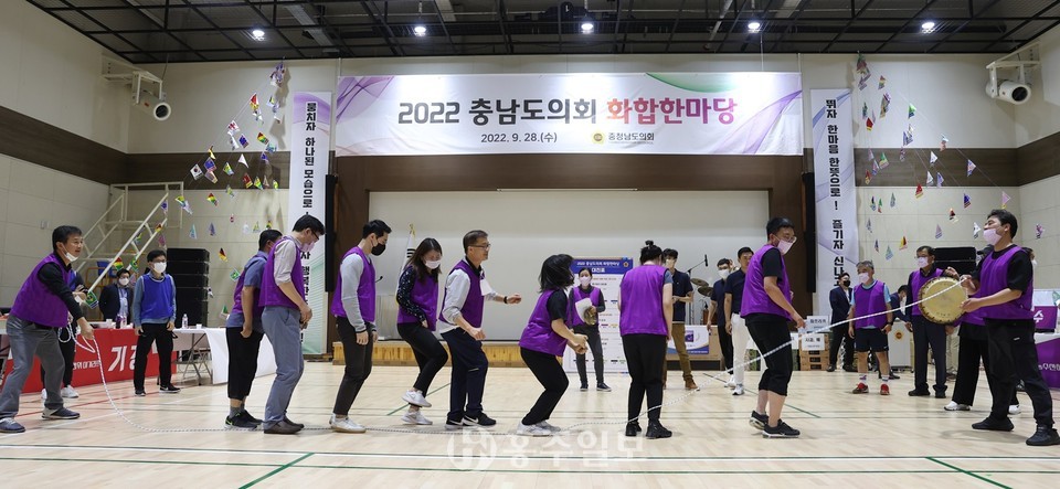 도의회는 28일 제340회 임시회를 마무리한 뒤 충남교육청 다목적실에서 도의원 48명과 사무처 직원 132명이 참여해 단체경기와 장기자랑 등 ‘2022년 화합한마당’을 개최했다.<사진> 화합한마당에는 김태흠 충남도지사와 김지철 충남교육감 등이 축하의 인사를 전했다.