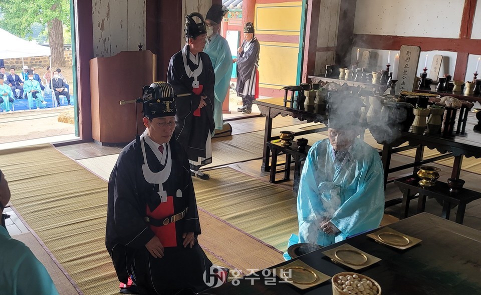 이날 석전대제에는 이용록 홍성군수가 초헌관으로, 이선균 홍성군의회 의장이 아헌관, 주진익 홍성교육지원청 교육장이 종헌관으로 참여했으며 홍주향교 유림과 지역주민 100여 명이 참석했다.