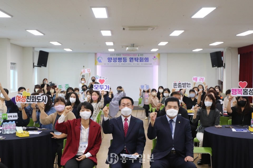 홍성군 양성평등분과위원회(위원장 선혜연)은 지난달 28일 새마을회관 2층 대회의실에서 ‘2022년 모두가 행복한 여성친화도시 홍성을 위한 양성평등 원탁회의를 개최했다. 이번 원탁회의는 양성평등주간을 맞아 성 평등 문화 확산을 위해 군민들의 의견을 듣고 정책 과제를 제안하기 위해 마련됐으며 군민 60여 명이 참석했다.<사진>