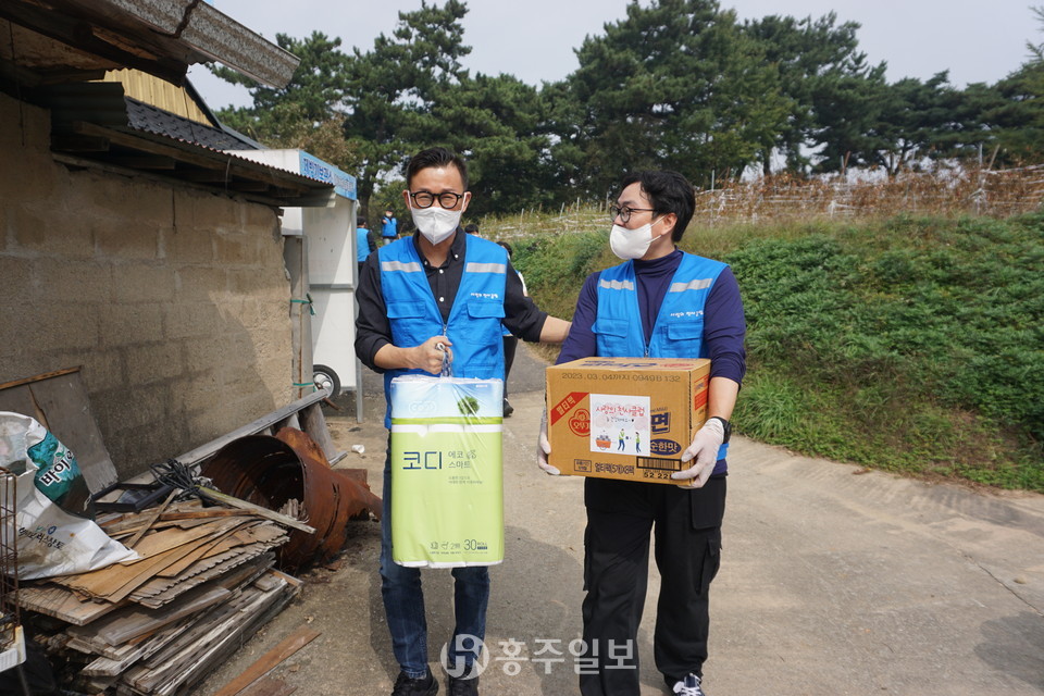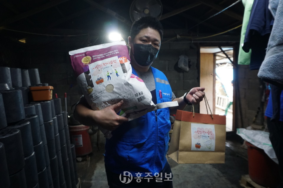 연탄·쌀·라면 등 생필품 전달… 홍북읍도 꾸러미 전달