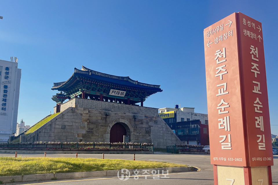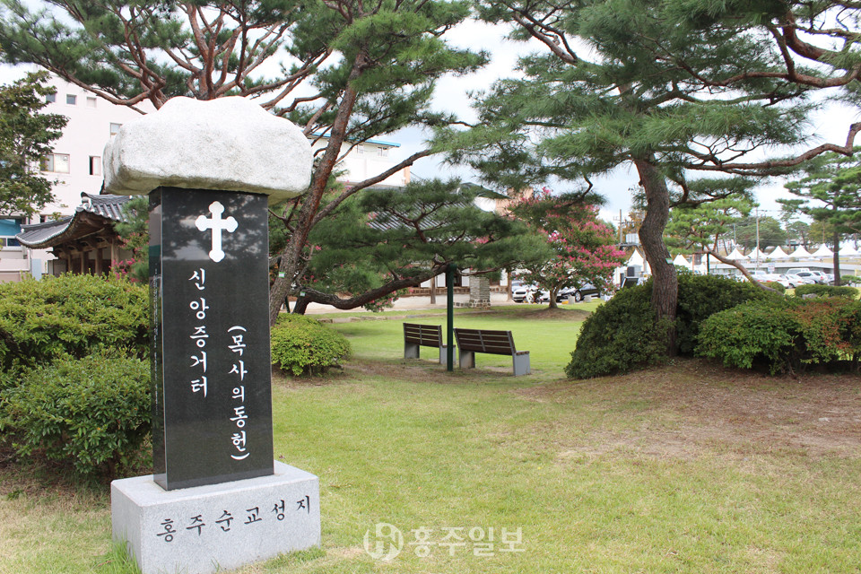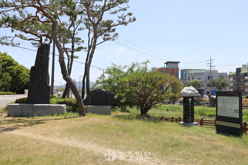 내포문화숲길의 내포천주교순례길인 홍주순교성지에는 순례객들의 발길이 연중 끊이지 않고 있다. 내포천주교순례길에는 홍주천주교 순교성지를 비롯해 여사울성지, 솔뫼성지, 신리성지, 배나드리성지, 해미순교성지 등 내포지역의 박해와 순교성지가 잘 연결돼 있다. 이렇듯 충청도 서부의 내포지역에는 순교지와 교우촌 등 천주교 성지가 많은데, 특히 홍주로 불리는 내포지역의 중심지인 홍성의 경우 홍주성 감영 터를 비롯한 순교성지가 많은 곳이다. 인근의 예산 신암의 여사울성지, 당진 합덕의 솔뫼성지, 신리공소와 합덕성당, 신평성당, 서산 해미의 천주교 순교지, 아산의 공세리성당 등 관련 유적지가 집중돼 있는 연유는 이곳이 ‘한국 천주교회사의 못자리’ 역할을 했기 때문이다.