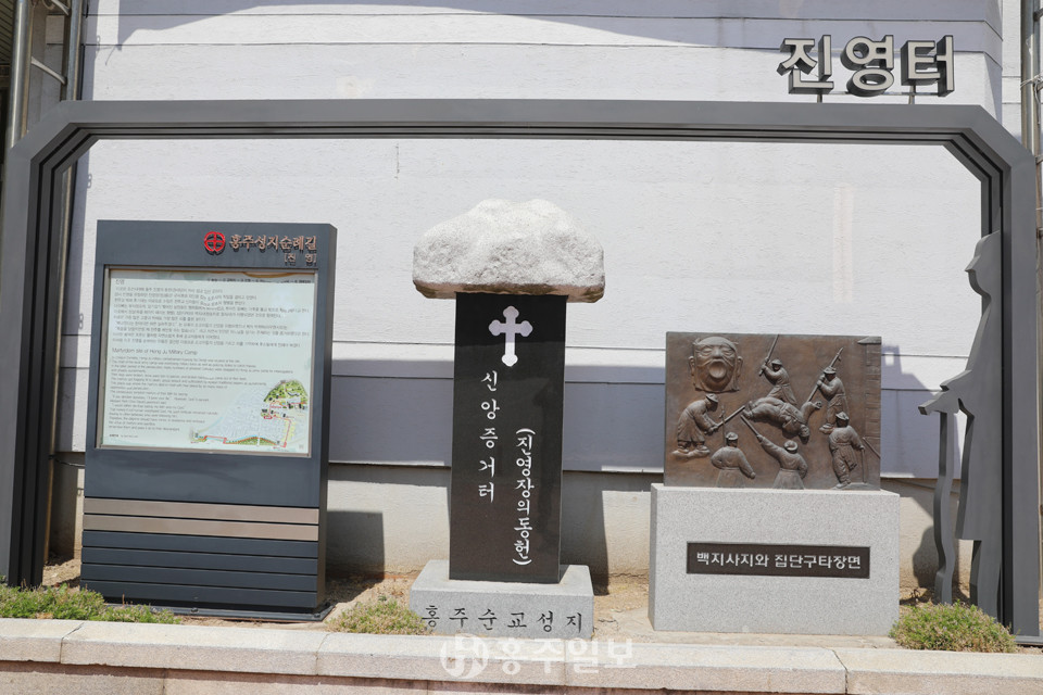 순교 3터인 ‘신앙증거 터 진영장의 동헌, 홍주진영’은 홍주성을 지키던 군인이며 죄인들까지 다스렸던 진영장이 머물던 곳으로 당시 진영을 관장하던 진영장(정3품)은 군사권과 죄인을 잡는 토포사의 직임을 겸하고 있었다. 홍주성 4대문 중 가장 중심인 조양문(東門) 바로 앞쪽에 위치해 있으며, 천주교 박해 후기에는 많은 천주교 신자들이 홍주진영으로 끌려와 이곳에서 가장 많은 고문과 박해가 있었으며, 가장 많은 피를 흘렸던 아픔이 서려 있는 곳이기도 하다.