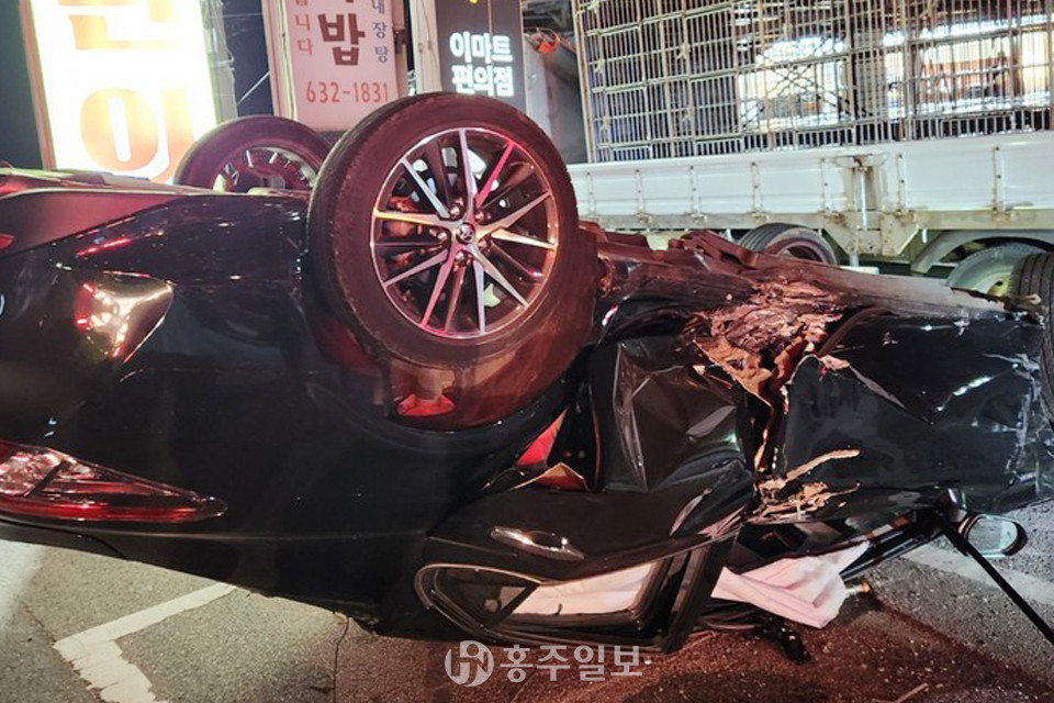 지난 14일 오후 7시경 구항농공단지 인근 삼거리에서 SUV차량과 승용차가 충돌하는 사고가 발생했다. 충돌과 함께 승용차가 전복됐으며, 40대 여성 A씨 등 4명이 경상을 입고 인근 병원으로 이송됐다.