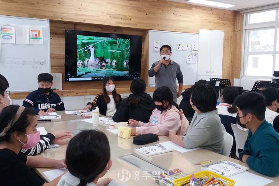 대정초등학교(교장 이준희)가 지난 11일 교내 도서실에서 권오준 생태동화 작가를 초청해 작가와의 만남의 시간을 가졌다.<사진>