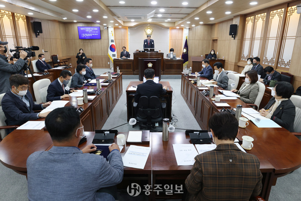 홍성군의회(의장 이선균)가 지난 21일 본희의장에서 제289회 제1차 정례회 2차 본회의를 개최하고 회기를 마무리 했다.<사진> 이번 정례회에서는 조례안 5건, 2021회계연도 세입세출 결산안 등 일반안건이 처리됐다.