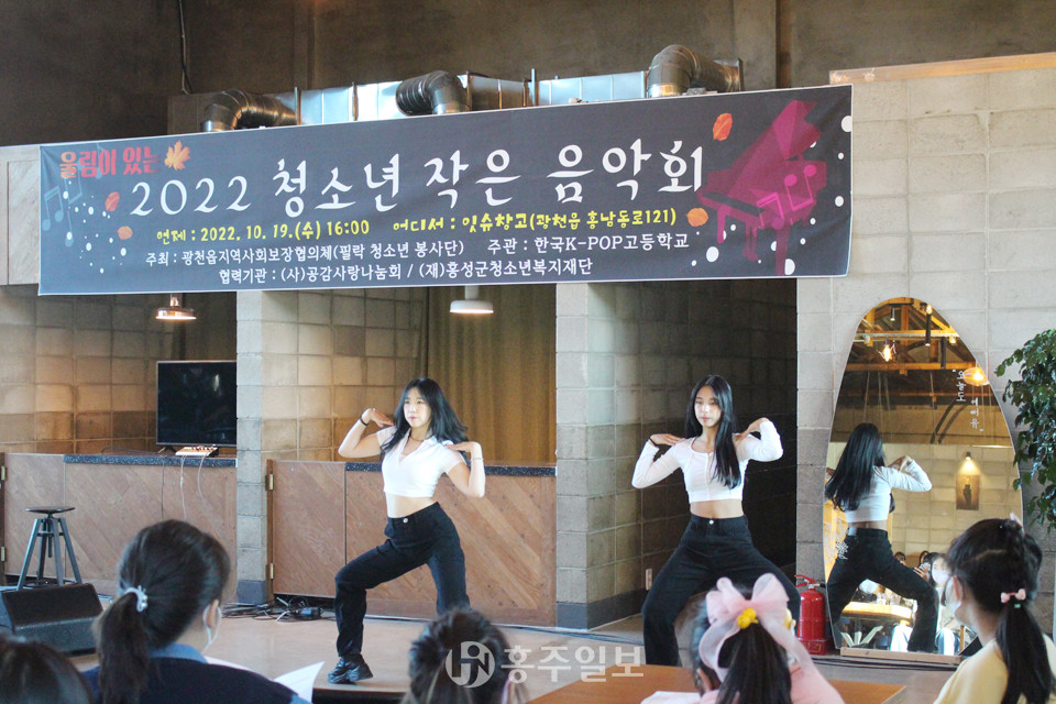 광천읍지역사회보장협의체가 주최하고 한국K-POP고등학교(교장 박병규)가 주관한 ‘울림이 있는 2022 청소년 작은 음악회’가 지난 19일 광천읍 잇슈창고에서 열렸다.