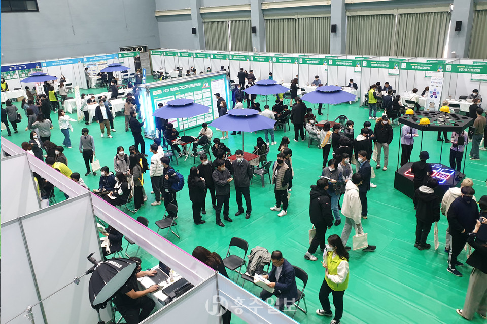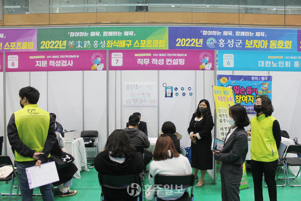 ‘2022 홍성군 구인구직 만남의 날’ 행사가 지난 27일 홍성군장애인스포츠센터에서 열렸다.<사진> 약 300여 명의 구직자가 찾은 이번 행사에는 일진전기(주), (주)동신포리마 등 관내 32개 기업이 직·간접적으로 참여해 현장 면접과 채용대행을 진행했으며, 구직자는 구직상담, 이력서 작성 컨설팅 서비스를 통해 일자리 연계와 채용 면접을 받았다.