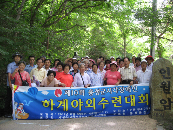 (사)충남시각장애인연합회 홍성지회(지회장 윤용돈)에서는 지난 8일 회원 84명과 직원· 자원봉사자 6명이 전북 무주구천동으로 제10회 하계야외수련대회를 다녀왔다.