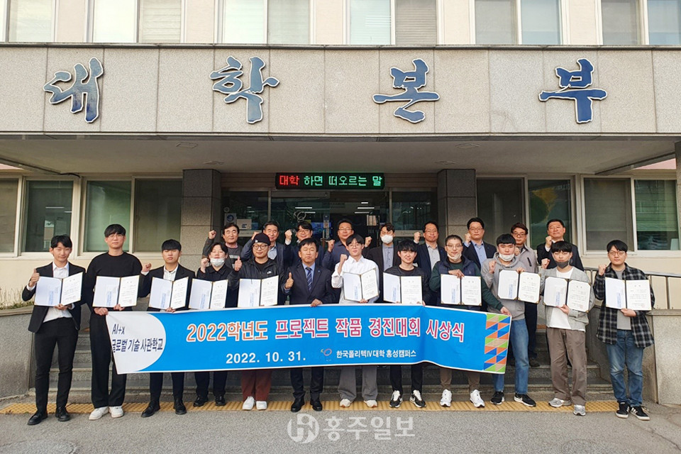 한국폴리텍대학 홍성캠퍼스(학장 김현철)가 지난달 31일 개최한 2022학년도 프로젝트 작품 경진대회에서 AI자동시스템과의 마이리틀팜(지도교수 민경성)이 금상을 수상했다.<사진> 총 4개의 학과에서 12개의 작품이 출품됐으며, 학생들이 시연과 발표를 맡아 창의성과 응용성을 확인하는 계기가 됐다.