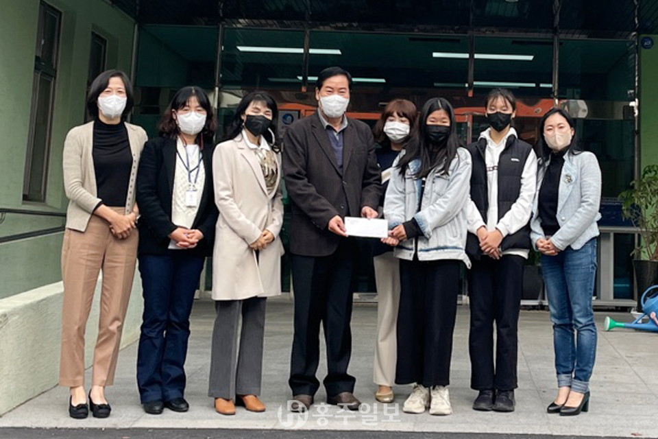 홍주초등학교 학생들이 바자회에서 얻은 수익금 전액을 지난 3일 홍성군장애인종합복지관에 기부했다.<사진> 홍주초등학교는 학생회의를 통해 3년 만에 열린 이번 바자회에서 생긴 수익금을 관내 장애인들과 장애가 있는 학생들을 위해 기부하기로 결정했다.