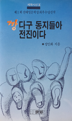 소개한 시는 노동현장 최전방 노동문예전사 정인화 시인이 1989년 9월 도서출판 세계에서 ‘세계시선’ 4번째로 출간한 시집 <깡다구 동지들아 전진이다> 말미에 수록한 표제 시 전문이다. 시인은 전태일기념사업회가 1988년 3월 노동해방과 인간해방의 횃불을 높이 든 전태일을 기념하기 위해 제정, 이듬해인 1989년 1월 20일 종로성당에서 시행한 제1회 전태일문학상 시상식에서 연작시 ‘불매가’ 로 최우수상을 받은 장본인이다. ‘제1회 전태일문학상 최우수 당선작’이라는 부제가 붙은 이 시집의 표제 시는 ‘불매가’의 마지막 28번째 시다.