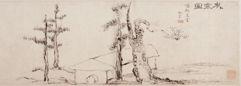 풍양 조씨, 안동 김씨 등의 세도 정치에 도전했다가 쫓겨나 제주도로 귀양 간 추사 김정희가 자신의 쓸쓸한 심정을 한 폭의 그림에 담았다. 메마른 둥치를 드러낸 세 그루 소나무에 둘러싸인 초라한 집 한 채. 날씨가 차가워진 뒤에도 변함없이 꼿꼿한 모습으로 작은 집을 둘러싸고 있는 소나무는 절개를 상징한다. 불우한 처지에 놓인 김정희를 끝까지 지켜 주며 북경에서 귀한 책까지 구해 준 제자 이상적을 이 소나무들에 비유했다고 한다. 추사의 심정이었을 것이다. 혼탁한 정치판에서 물러난 김정희는 세상을 한탄하며 글씨와 그림에 깊숙이 몰두하게 된다. 몰락한 자신을 아무도 찾지 않아 가슴 속에서 벌어지고 있는 외로움과 분한 마음을 날이 추워진 후에도 변함없는 소나무와 잣나무에 기대어 견디려고 하는 분투가 느껴진다. 조선 후기 최고의 명품 서체로 알려진 추사체는 그렇게 태어난 것이다. <펀집자 주>