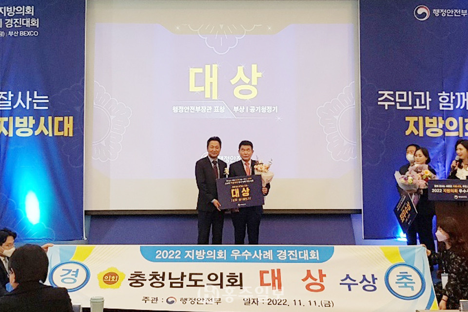 충남도의회(의장 조길연)가 행정안전부에서 주최한 올해 지방의회 우수사례 경진대회에서 대상을 수상했다.<사진>