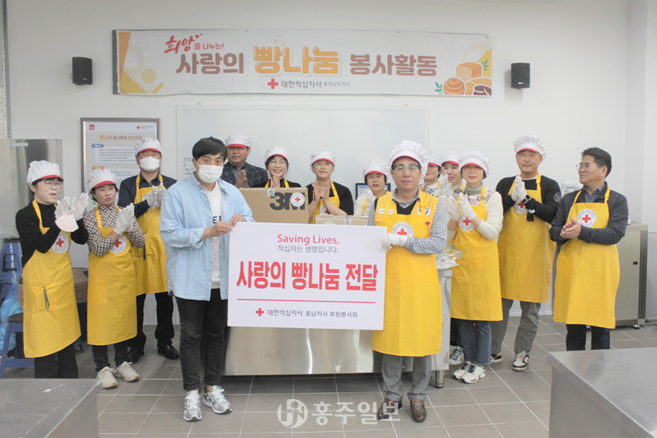 충남도민들로 구성된 봉사회 회원들은 이날 대한적십자사 충남지사에서 손수 빵을 만들고 광천읍 아동양육시설 사랑샘과 덕산면 새감마을에 만든 빵을 전달했다.