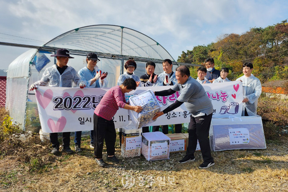 홍성지역 청년들이 이끄는 미래로 봉사단이 지난 12일 구항면의 저소득 가구를 찾아 연탄 500장과 이불, 생필품들을 직접 전달하는 봉사활동을 펼쳤다.<사진>
