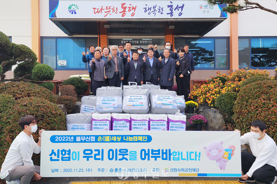 창립 50주년을 맞은 풀무신협(이사장 주정모)이 신협사회공헌재단에서 진행하는 ‘온세상 나눔 캠페인’의 일환으로 지난 23일 관내 취약계층 33가정에 이불 등 난방용품과 생필품을 전달하며 따뜻한 겨울나기를 위한 나눔 활동을 실시했다.<사진>