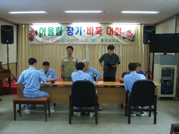 홍성교도소(소장 이동규)는 수용자들의 건전한 여가생활을 독려하고, 명랑한 수용생활 분위기 조성을 위해 지난 한 달간 수용자들이 참가하는 장기·바둑대회를 개최했다. 32일간에 걸쳐 진행된 이번 대회에는 8팀 24명이 출전했으며 참가 수용자들은 예선전부터 그동안 갈고 닦은 실력을 유감없이 발휘하는 등 치열한 공방전을 펼치는 사이에 무더위를 잠시나마 잊을 수 있었다. 한편 이동규 소장은 “앞으로도 수용생활에 활기를 불어넣고 건전한 인격수양 및 가치관 형성을 위해 다양한 교화행사를 마련할 계획”이라고 밝혔다.