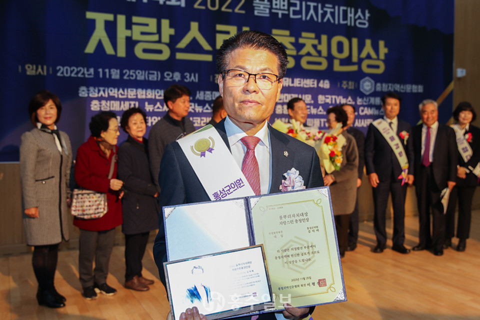 김덕배 홍성군의원(국민의힘)이 지난달 25일 세종시 조치원복합커뮤니티센터에서 개최된 ‘제14회 2022 풀뿌리자치대상 자랑스런 충청인상’ 의정발전부문 대상을 수상했다.<사진>
