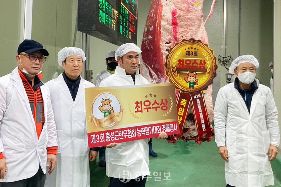 전국한우협회 홍성군지부(지부장 이지훈)는 지난 6일 홍성축산물공판장에서 ‘제3회 홍성군한우협회 한우 능력 평가대회’를 개최해 최고급 홍성한우를 선정했다.